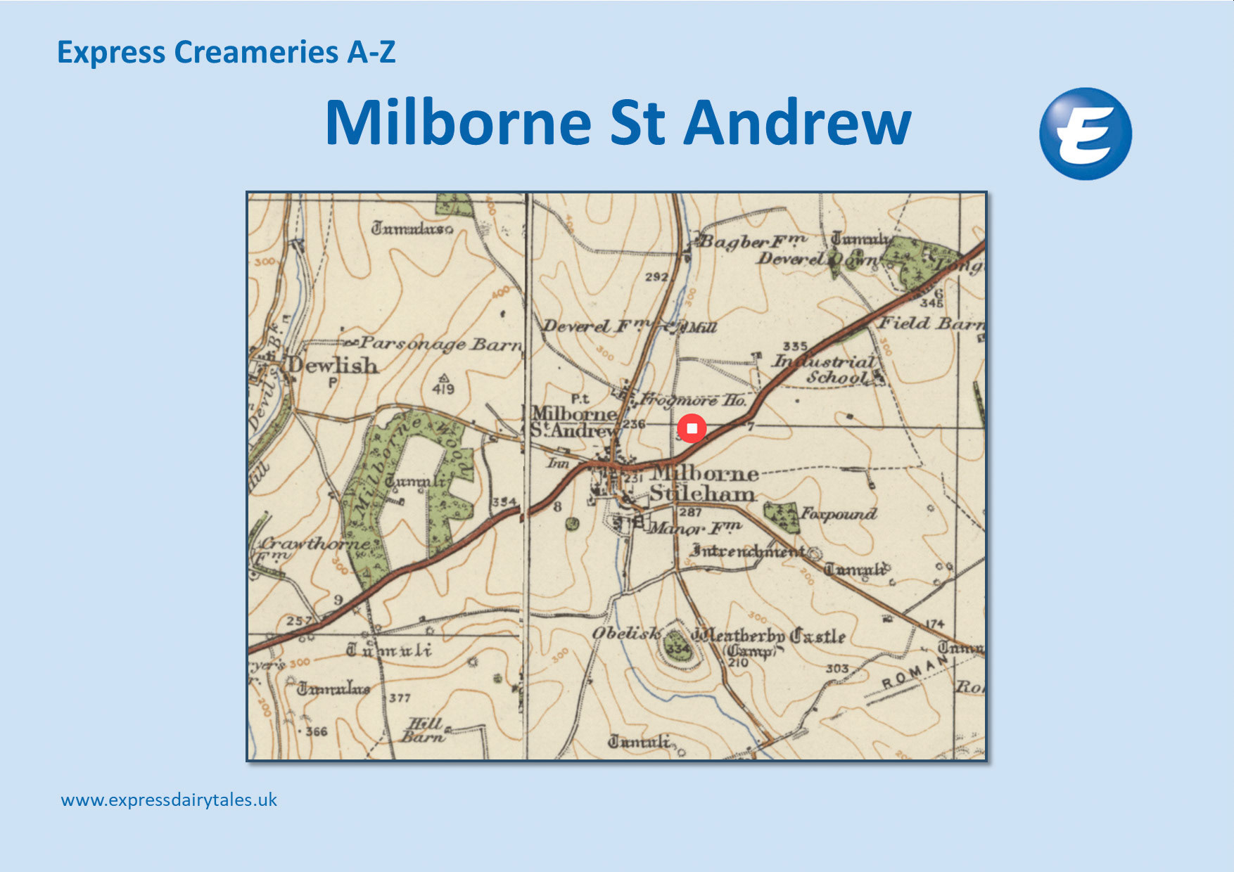 1934 Advertisement, Bladen Dairies, Milborne St Andrew's London Offices. IMS bought Bladen Dairies in 1941, and then sold to Express Dairy in 1952. (Courtesy Carol, Flickr, from St Pancras Past and Present, Seventh Edition)