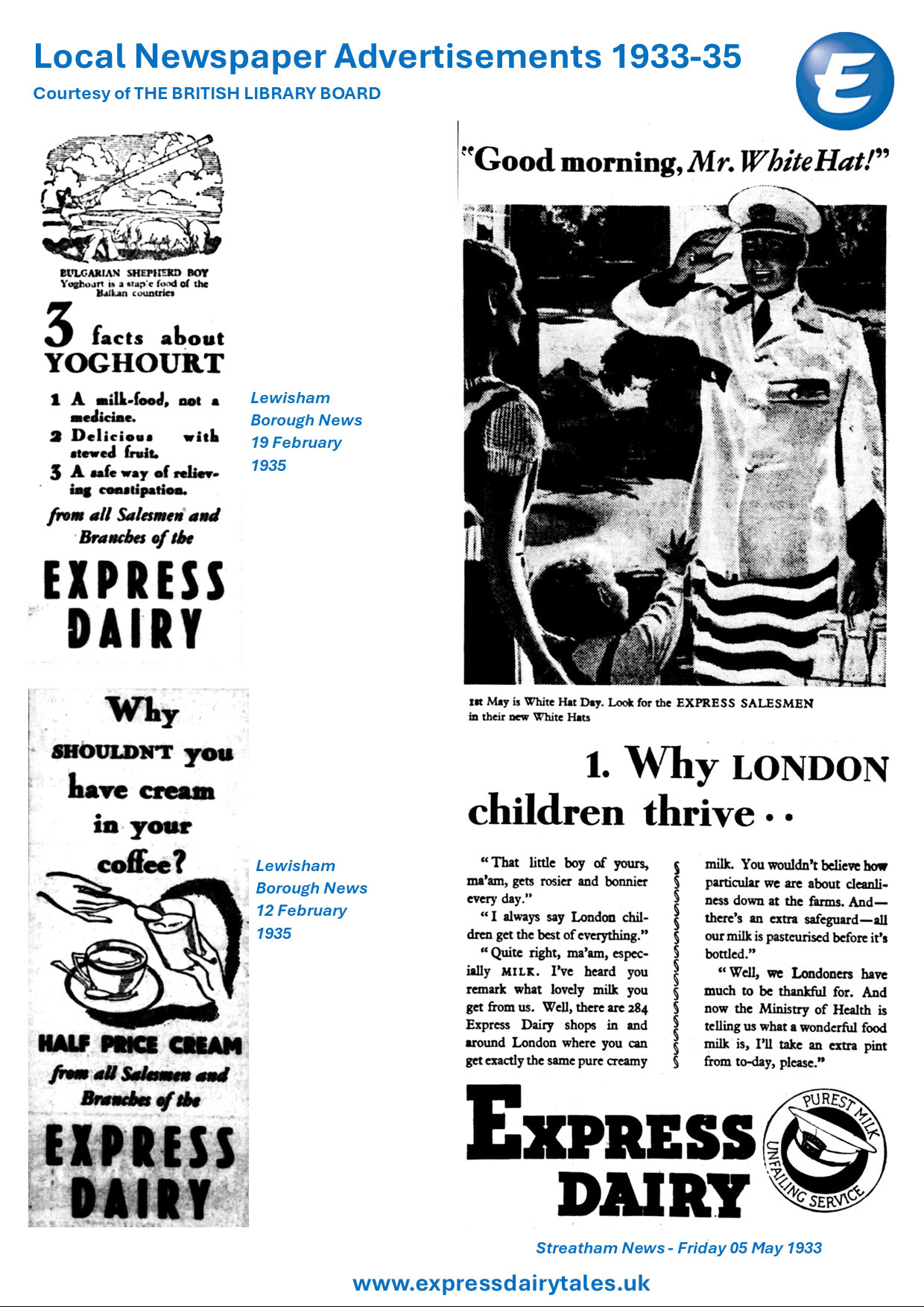 1933 Express Dairy advert in Lewisham Borough News - Friday 5 May (Courtesy of THE BRITISH LIBRARY BOARD)